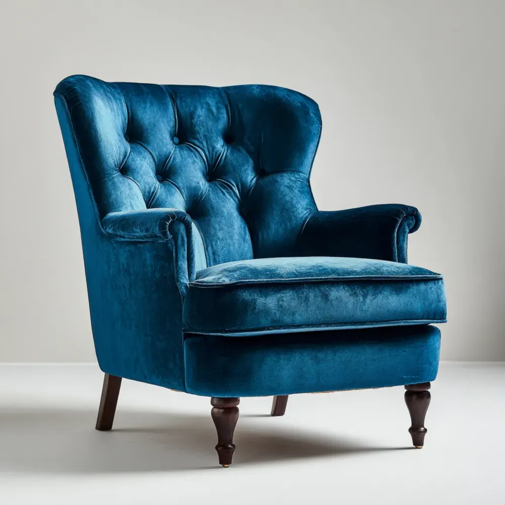 アームチェア ベルベット 75x85x100 cm – ブルー – クラシックデザイン