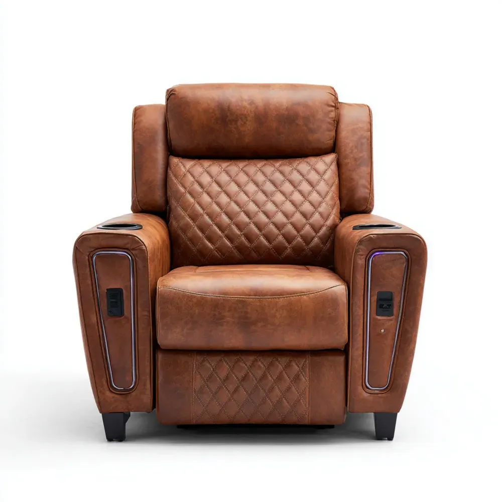 リクライニングアームチェア 合成革 100x90x100 cm – ブラウン – コンテンポラリーデザイン