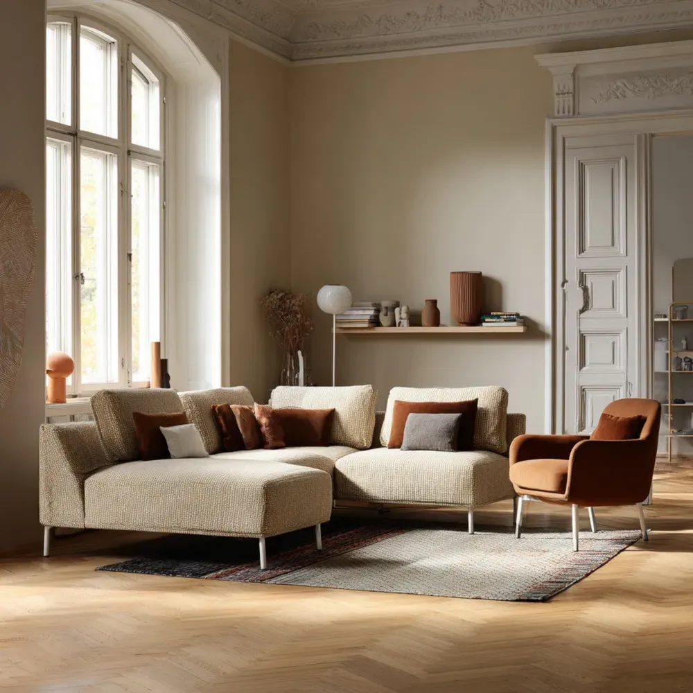 材質と工芸ソファは高品質の布製で、ベージュとブラウンの落ち着いたカラーで包まれています。洗練されたデザインがインテリアに溶け込みます。