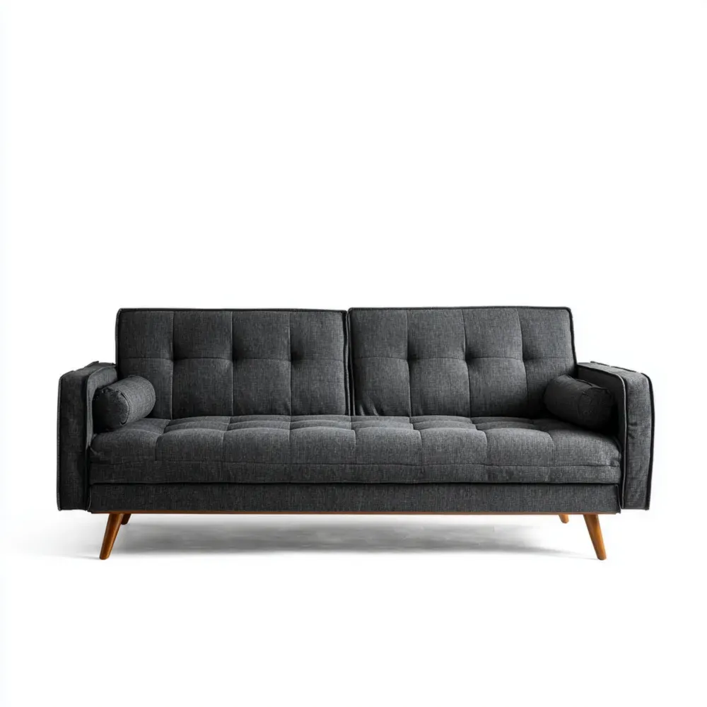 高品質なダークグレーの布地を使用し、しっかりとしたフレームは木材で作られています。